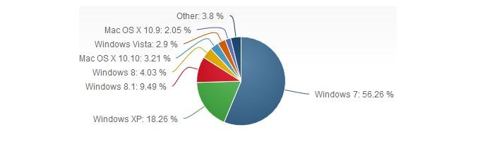 و كانت الشركة الأمريكية مايكروسوفت قد قررت في 8 أبريل من سنة 2014 رفع الدعم التقني و الأمني عن نظامها الشهير ويندوز إكس بي و هو ما تسبب في نهاية المطاف في انخفاض نسبة تشغيل النظام بشكل كبير، و ذلك خصوصا لصالح ويندوز 8 حيث وصل إلى 13.57 في المئة من المستخدمين في شهر نوفمبر بعد أن كانت نسبته 23.87 في المئة في شهر سبتمبر، لكن المفاجئة كانت في الشهر الماضي.