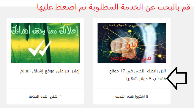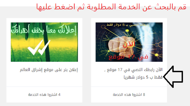 عندما تقوم بالتسجيل والانتهاء منه .. قم بالبحث عن الخدمة المطلوبة مثل :